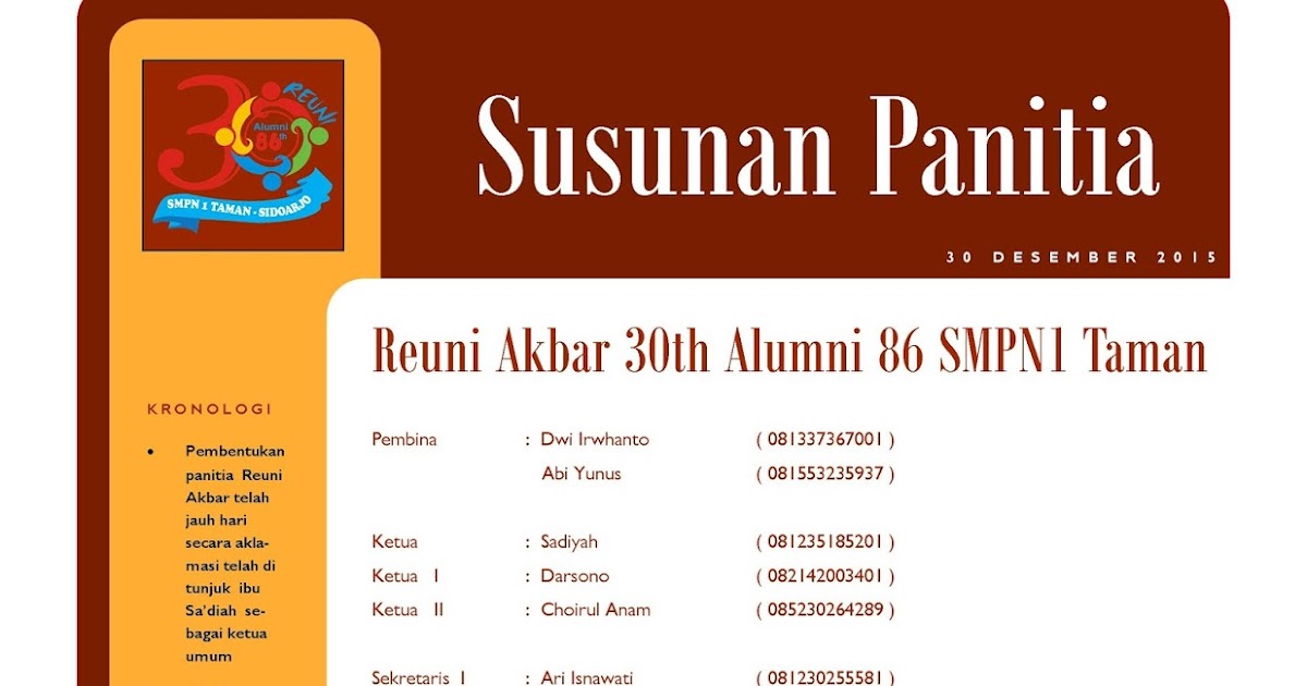 Proposal hut smk n 1 banyumas ke 41. Atas perhatian dan kerjasamanya kami haturkan banyak terima kasih. Diadakan sebagai acara alumni lima tahunan. Proposal reuni smpn 1 kedungadem alumni 1987. Reuni smp negeri 1 manyar.